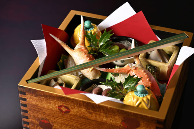 先附  わさび花 雲丹 平貝 酢じゅれ 節分枡盛り込み